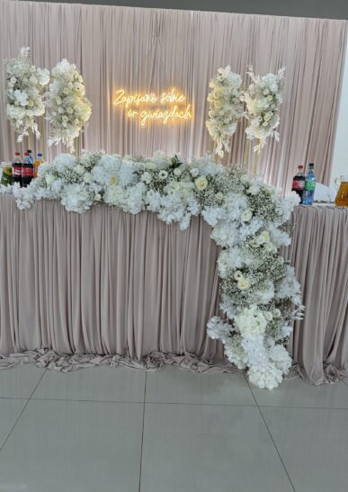 Dla nas estetyka to indywidualne podejście do piękna, które różni się dla każdej pary. Zamiast gotowych cenników, tworzymy oferty dopasowane do Waszych marzeń i budżetu. Naszym celem jest stworzenie dekoracji, które odzwierciedlają Waszą unikalną historię, łącząc Wasze oczekiwania z naszą kreatywnością.